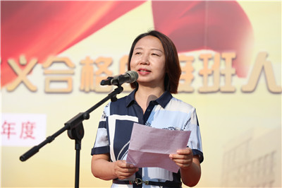 初一年级组长何馨老师代表全体教师发言,希望同学们带上理想和目标,带上自信和坚强,带上勤奋和努力一起出发,师生共同奋进、共创辉煌!