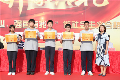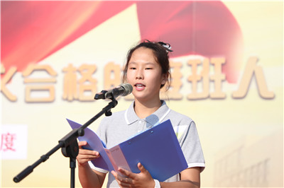优秀学生代表初二2班王航同学发言,表达了努力奋斗、挥洒汗水,成长为德智体美劳全面发展的社会主义建设者和接班人的决心。
