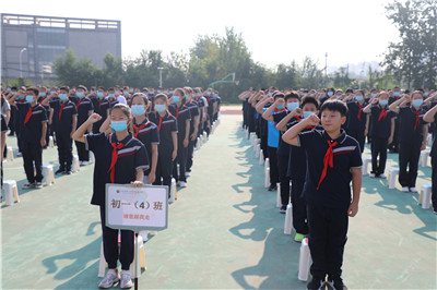 全体初一新生在八十睿德校旗下进行了庄严的宣誓:
